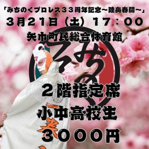 3月21日(土)17:00 矢巾町民総合体育館 小中高校生2階指定席